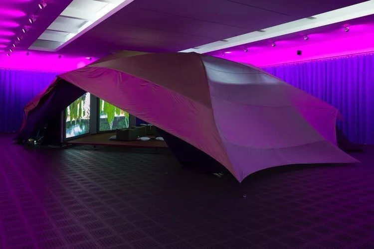 David Zwirner’s shows showed his serious commitment to historic artists, some seemingly less fresh within today’s contemporary conversation but nevertheless providing a serious background to what’s happening. I am always impressed by established artists who feel fresh, their progressive expressions exhibiting resilience in today’s overcrowded marketplace where there are small tweaks or what many call “gimmicky art.” None of these were to be found at Zwirner’s shows and perhaps the most impressive for the history of video art was the two exhibitions dedicated to the icon Stan Douglas. His 6-channel video, The Secret Agent, is an epic story that was difficult in that it required a long viewing time, but resorted to positioning the viewing in a traditional viewpoint, standing or crunching on small benches. This relationship to video art is surely representative of the earliest masters of the form but it offered a contrast to the newer generation of artists exploring alternatives to this traditional installation of video.